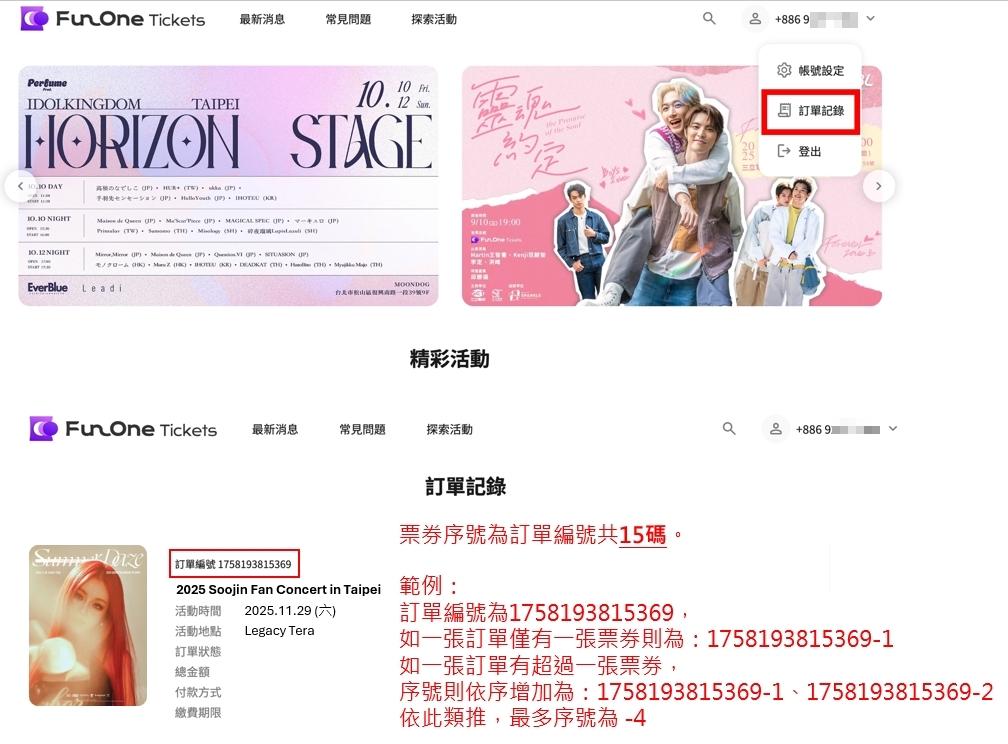 (For e-tickets, please refer to the order example; for physical tickets, please refer to the sample ticket.)