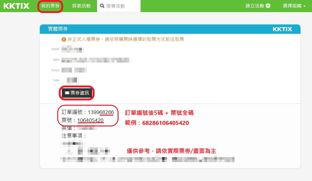 ★チケットのシリアル番号は、サンプル画像の赤枠内に記載されています。