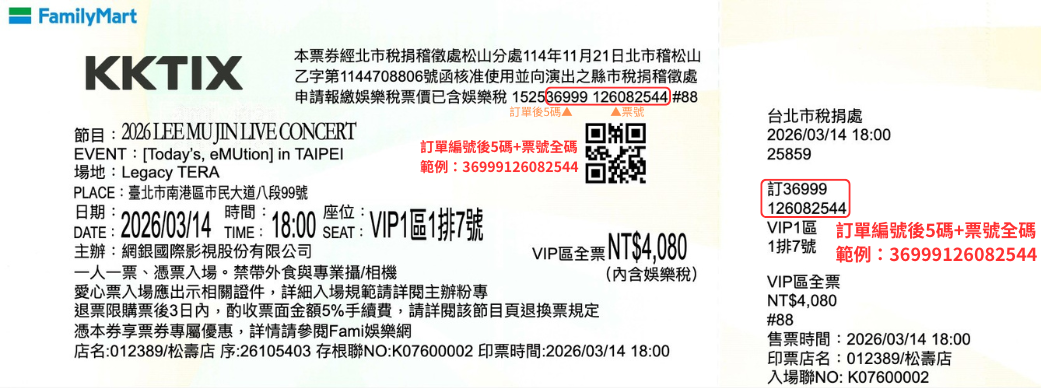 ★ 티켓 번호는 예시 이미지의 빨간색 테두리 안에 있는 번호입니다.